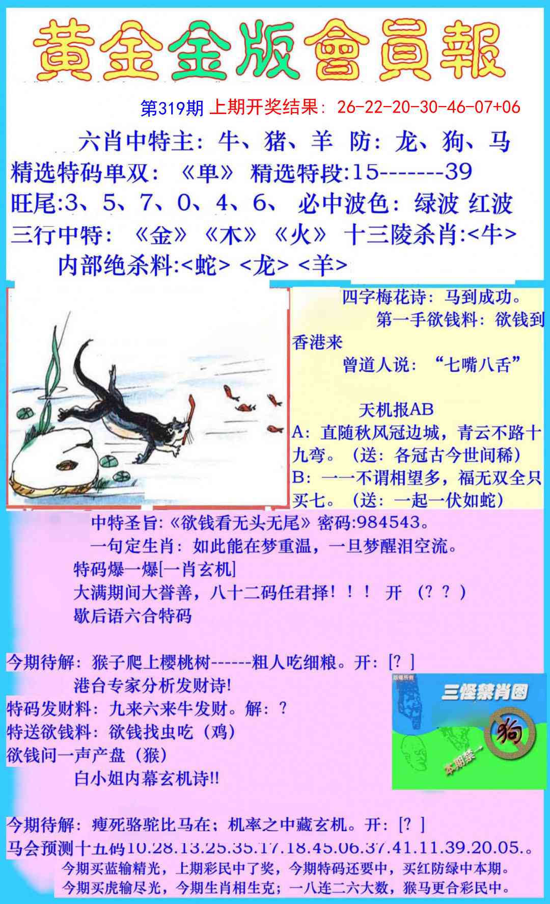319期六肖【虎狗蛇猪兔牛】开:??准