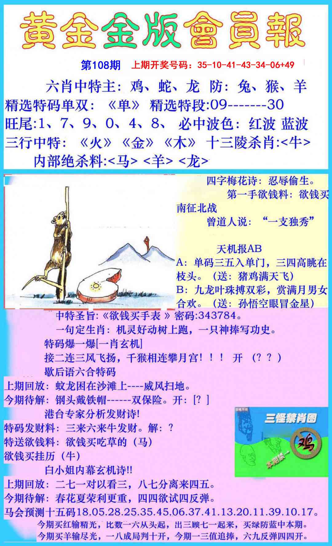 107期六肖【猴蛇鸡马兔鼠】开:4个准