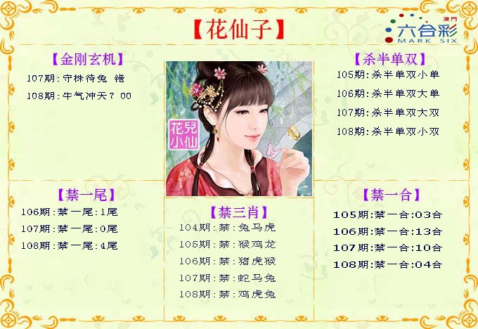 106期六肖【虎鸡马鼠猴牛】开:4个准
